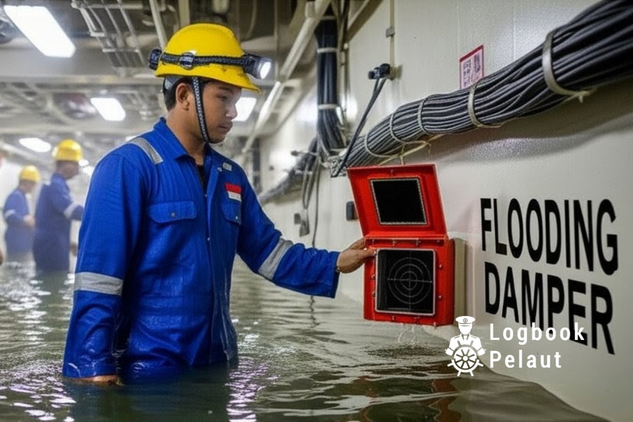 Kapten dan Chief Officer segera diberitahu. Bertindak cepat, Bosun menghentikan operasi pompa ballast dan membuka Flooding Damper. Fungsi Flooding Damper memiliki peran krusial dalam sirkulasi udara di ruang pompa dan harus selalu berada dalam kondisi tertutup saat situasi normal. Fungsi utamanya adalah untuk mengalirkan udara ketika damper atau flap pada saluran bawah sudah terendam air. Dengan membuka flooding damper yang terletak di bagian atas, sirkulasi udara di dalam ruang pompa tetap terjaga, memastikan lingkungan kerja yang aman meskipun terjadi genangan air.